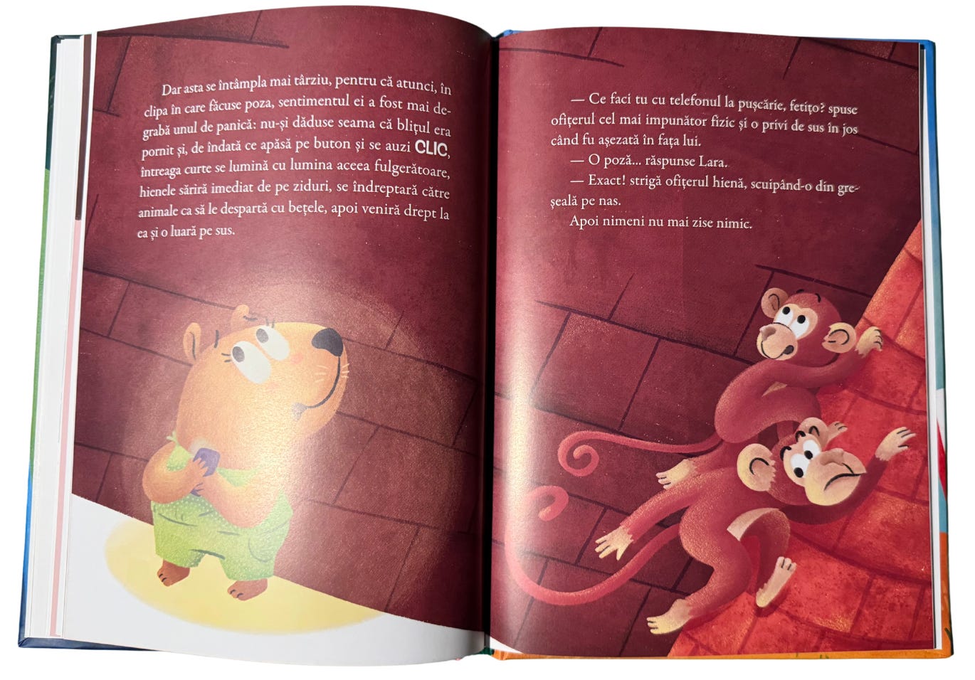 Este o poveste simpatică și antrenantă, Lara e foarte credibilă și haioasă, cu raționamentul ei de copil sociabil - chiar, știați că capibarele sunt printre cele mai prietenoase animale din lume și nu vânează pe nimeni? Însă în habitatul lor natural nu sunt vânate de crocodili, ci de caimani, un tip de aligatori. Și crocodilii și aligatorii sunt familii biologice complet diferite.