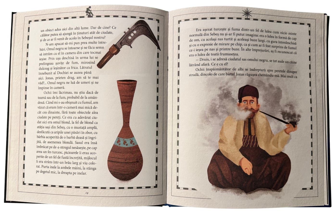 Dar cel mai mult mi-a plăcut când am descoperit că este un fel de mic docufiction! 😍 Franz Binder, personaj perfect real, a fost un sas transilvănean, născut la Sebeș într-o familie de farmaciști și devenit explorator și negustor. A călătorit în locuri exotice și pentru zilele noastre, darămite pe atunci - Orientul Apropiat și Africa, Sudan și Cairo, Nilul Alb… Și a colecționat foarte multe obiecte de artă și cultură din acele zone, obiecte care acum fac parte din colecția Muzeului Etnografic Franz Binder din Sibiu, singurul muzeu de etnografie extra-europeană din România. În 2013, Radu Vancu a scris o mică poveste didactică sub forma unei scrisori a inventatului Dezideriu -„Shilluk. Scrisoare despre Franz Binder”, în cadrul unui proiect cultural. Anul trecut, de la această sămânță povestea a fost rescrisă și transformată în carte ilustrată și, iată, acum e pe lista de finaliști! 😍