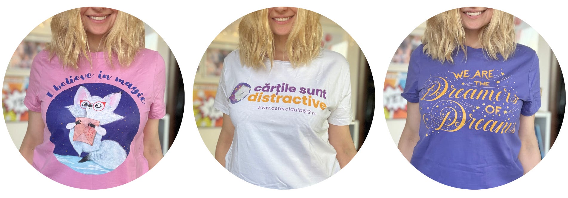 Deocamdată asta e singura posibilitate de a avea un tricou cu Asteroidul, dar în viitorul apropiat sper să reușim (eu și Maria, jumătatea mea artistică) să dăm drumul unei colecții întregi de merch de din poveste 😍